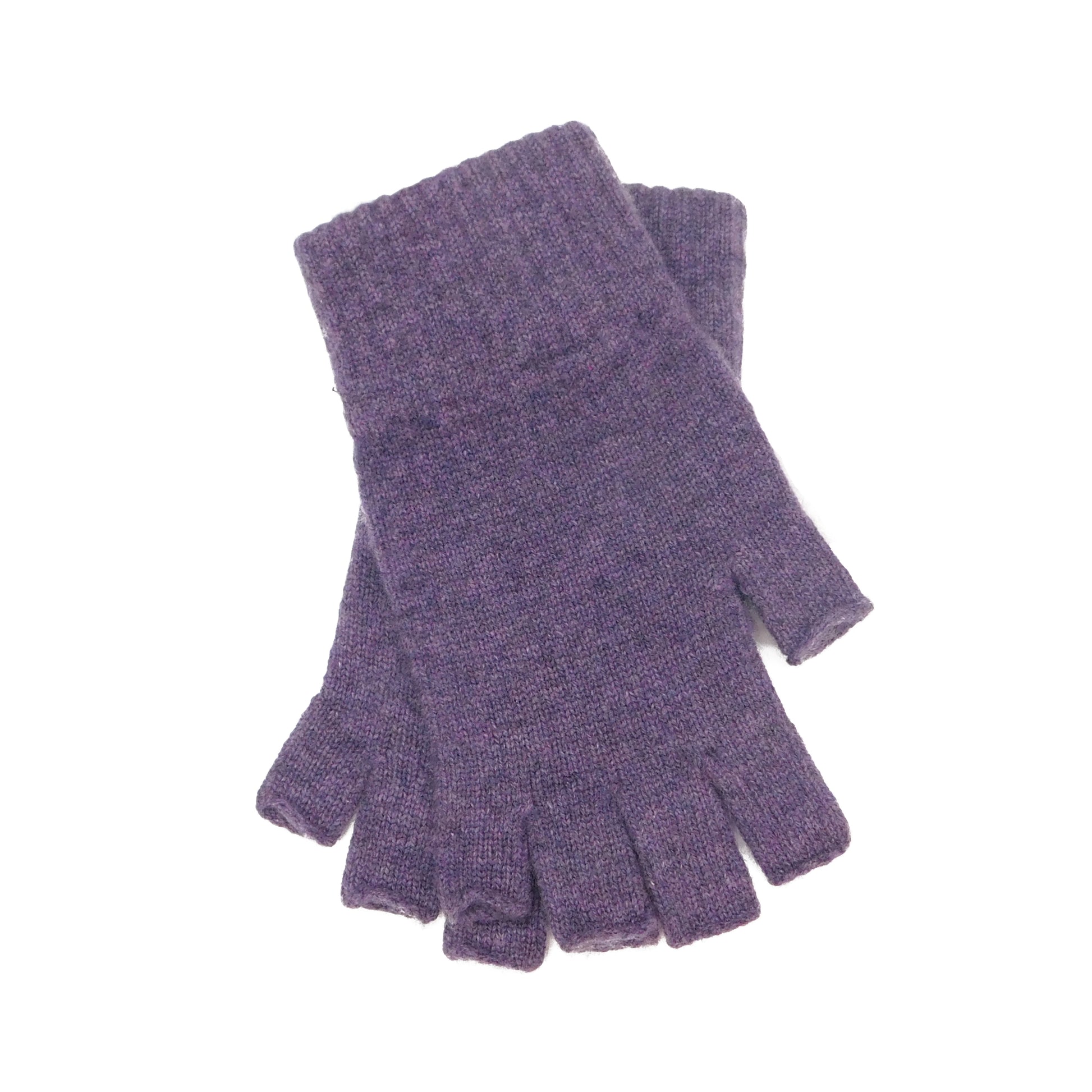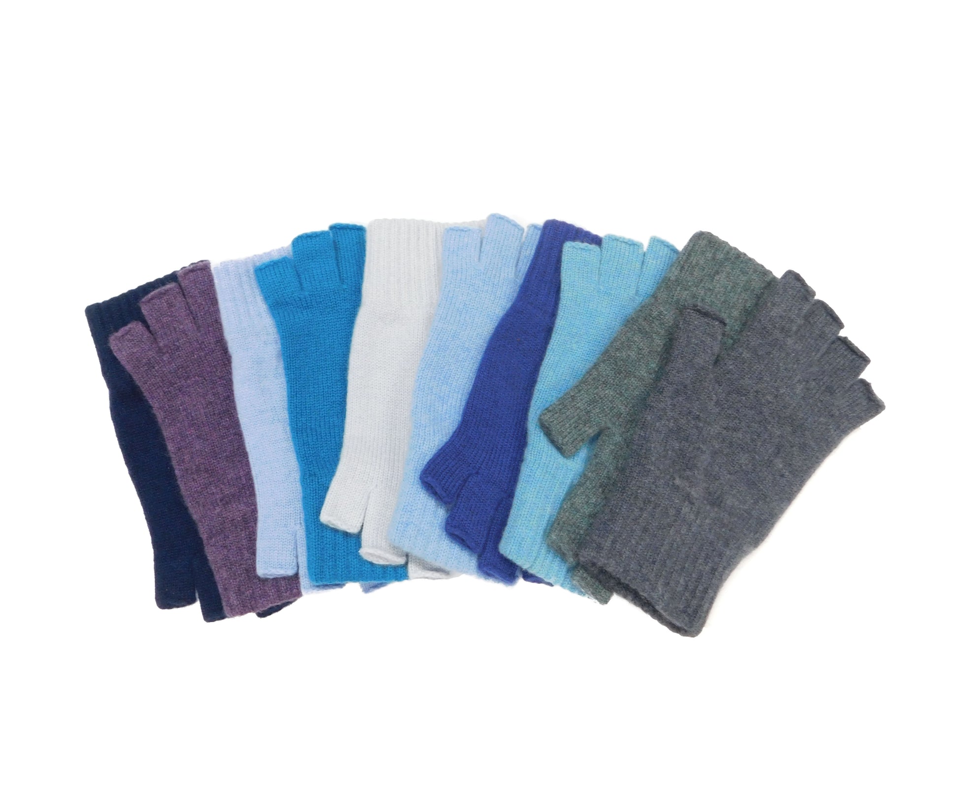 Ladies Pure Cashmere Fingerless Gloves — Ribbed Cuff | Handcrafted in Hawick | One Size | Greys, Blues and Purples