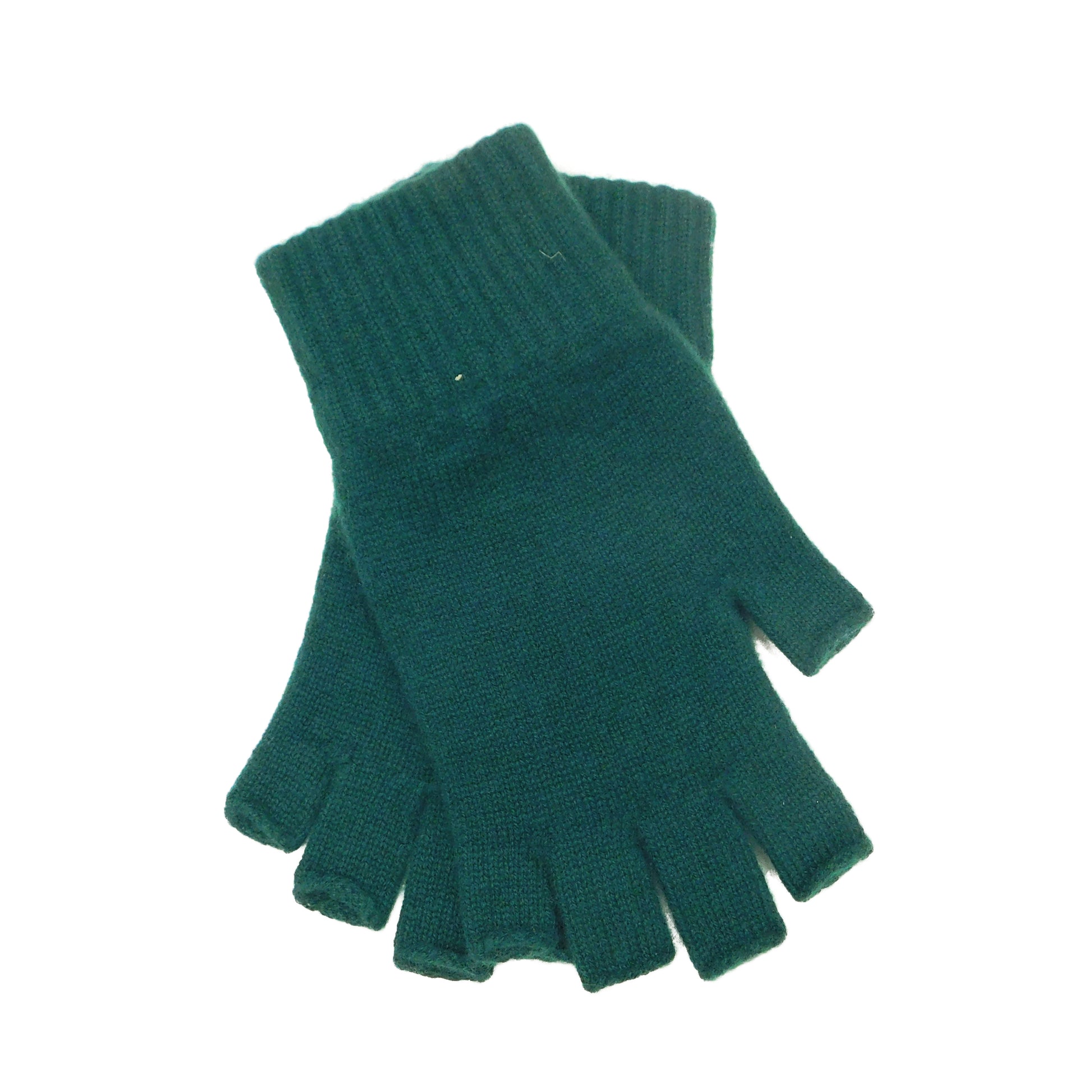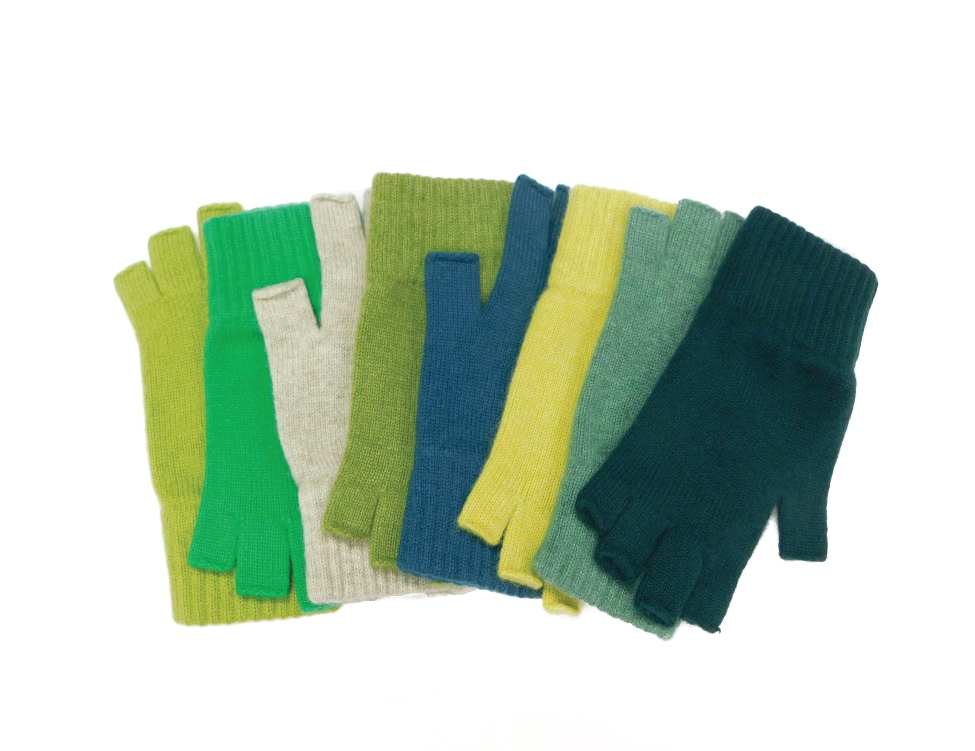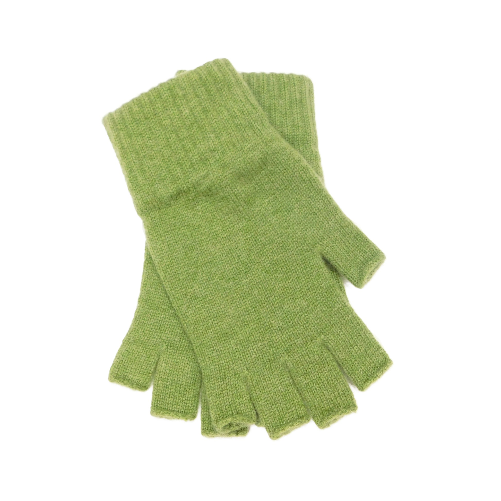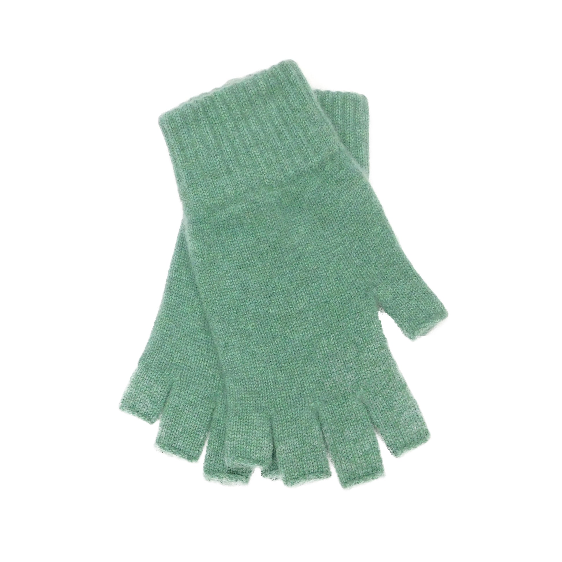 Ladies Pure Cashmere Fingerless Gloves — Ribbed Cuff | Handcrafted in Hawick | One Size | Greens