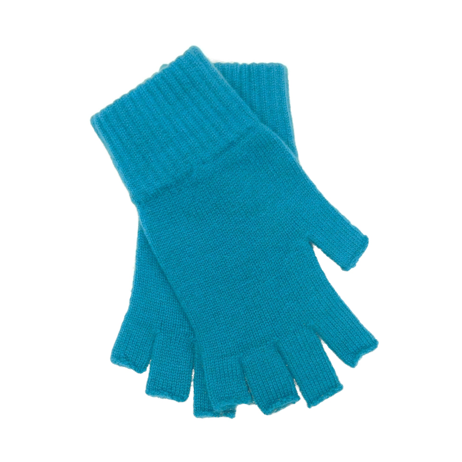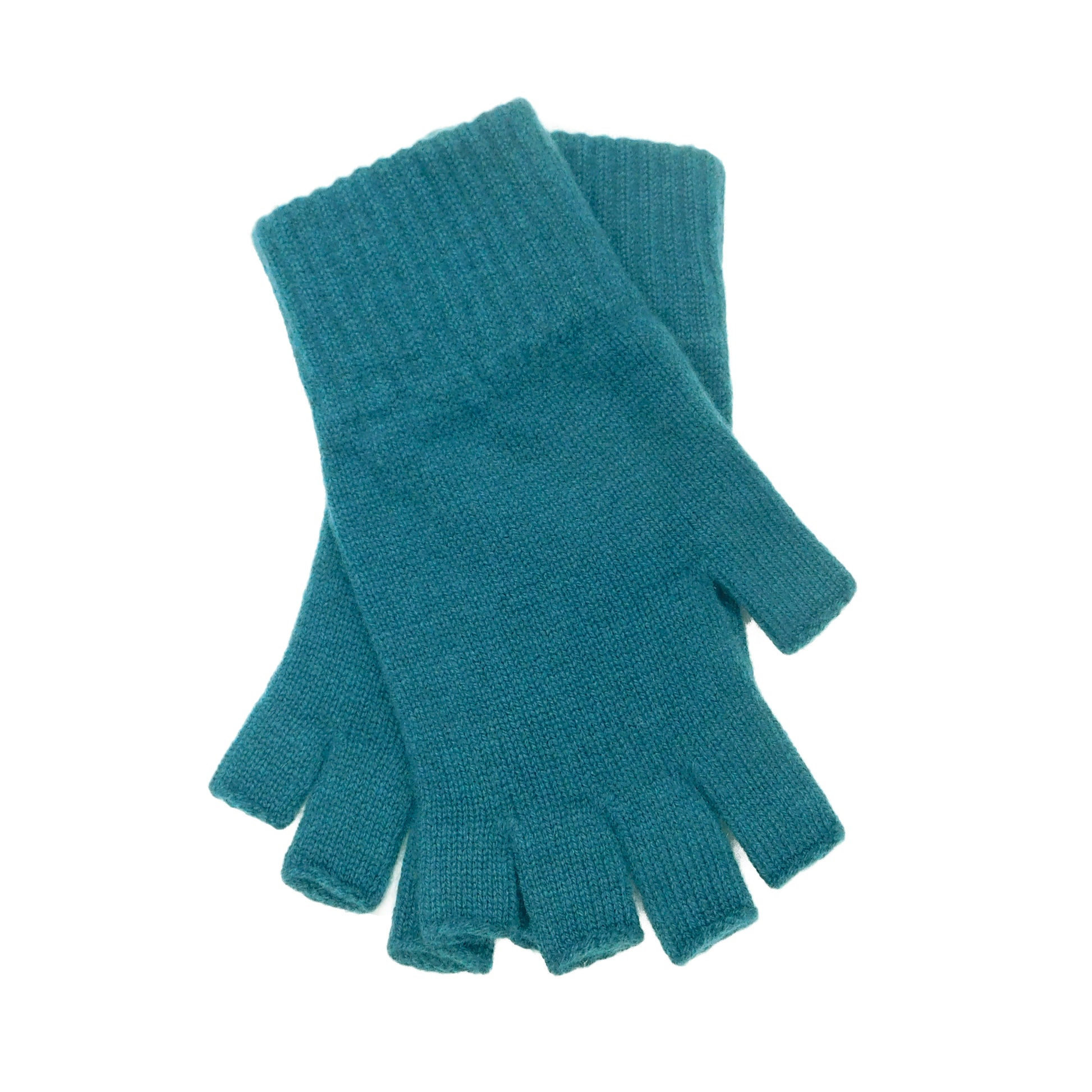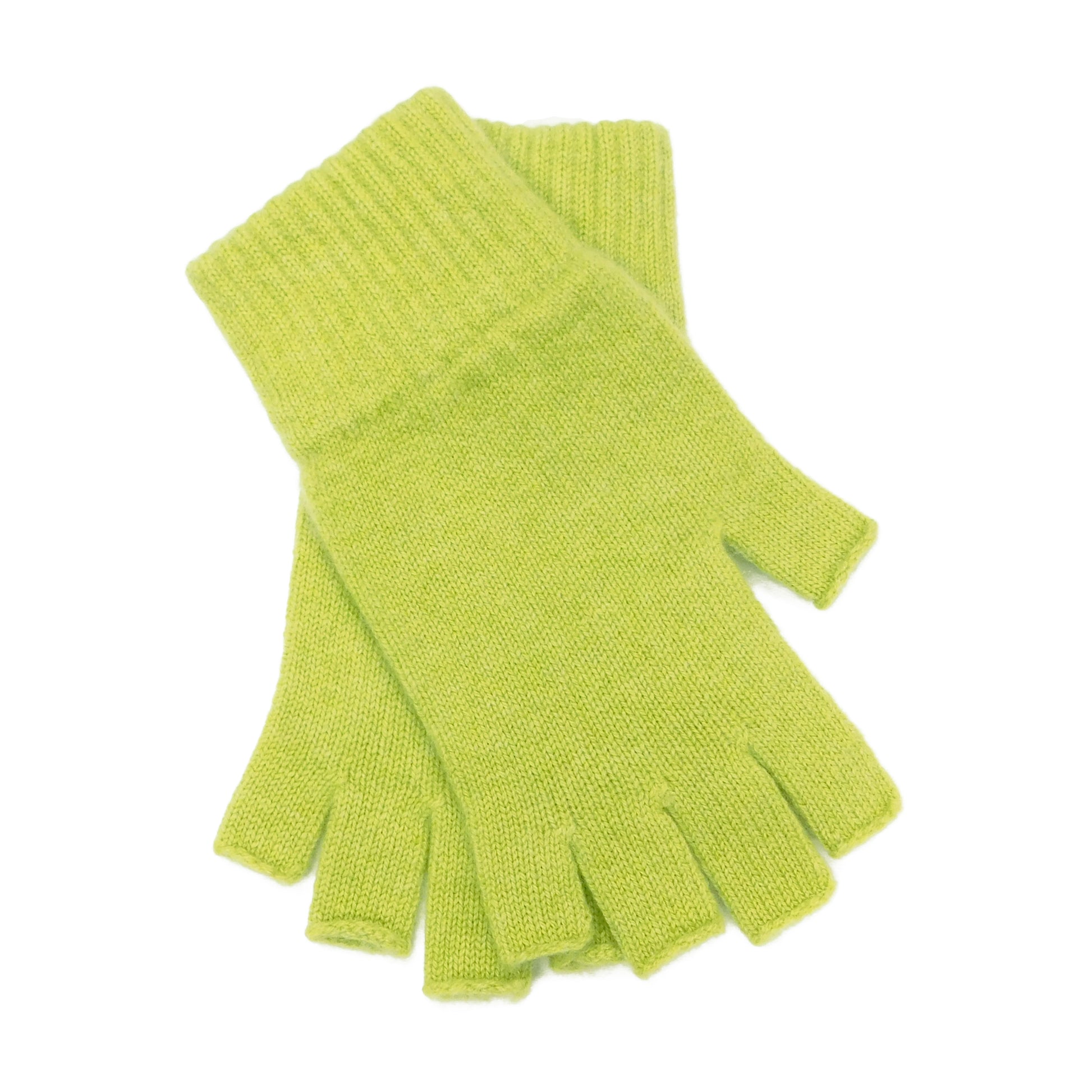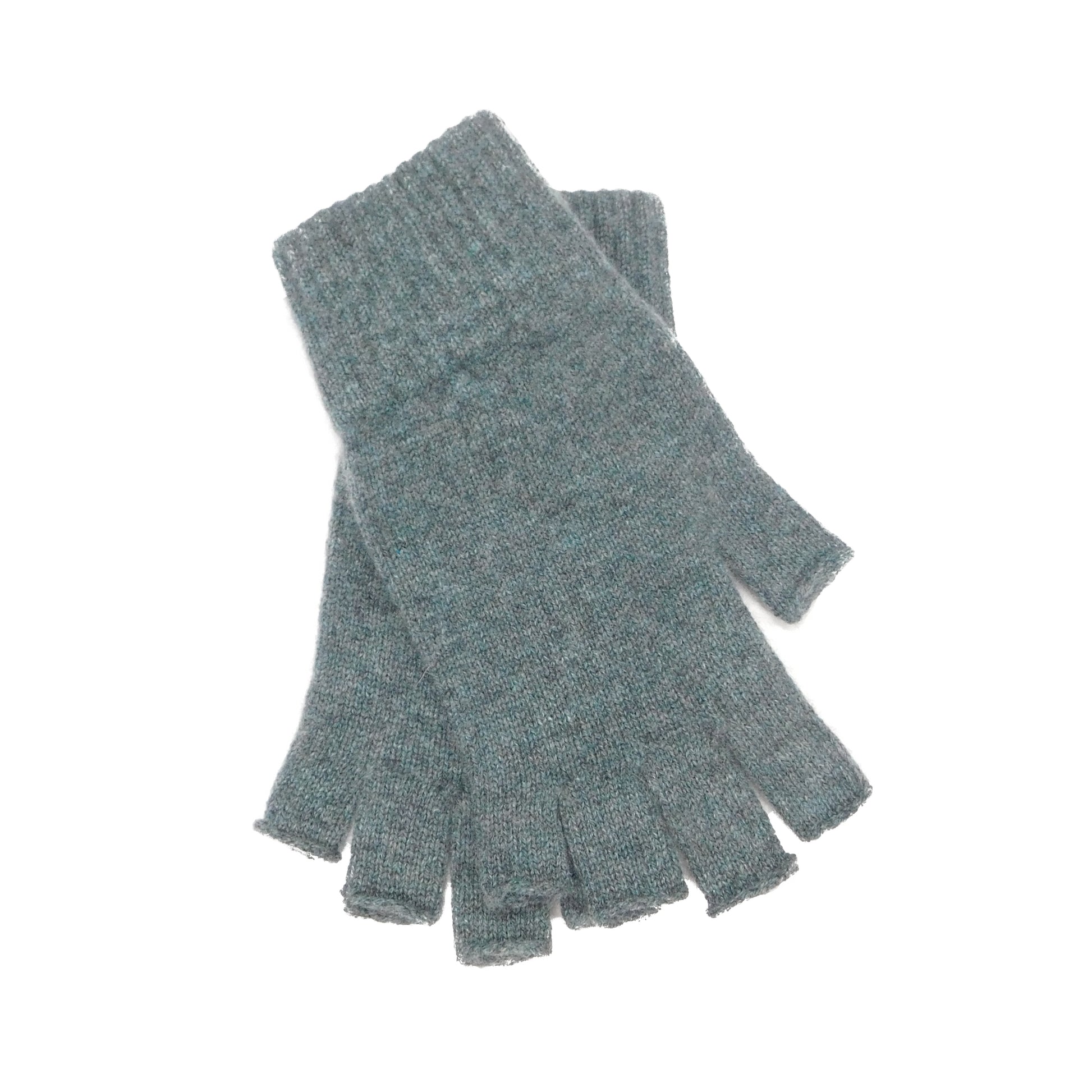 Ladies Pure Cashmere Fingerless Gloves — Ribbed Cuff | Handcrafted in Hawick | One Size | Greens