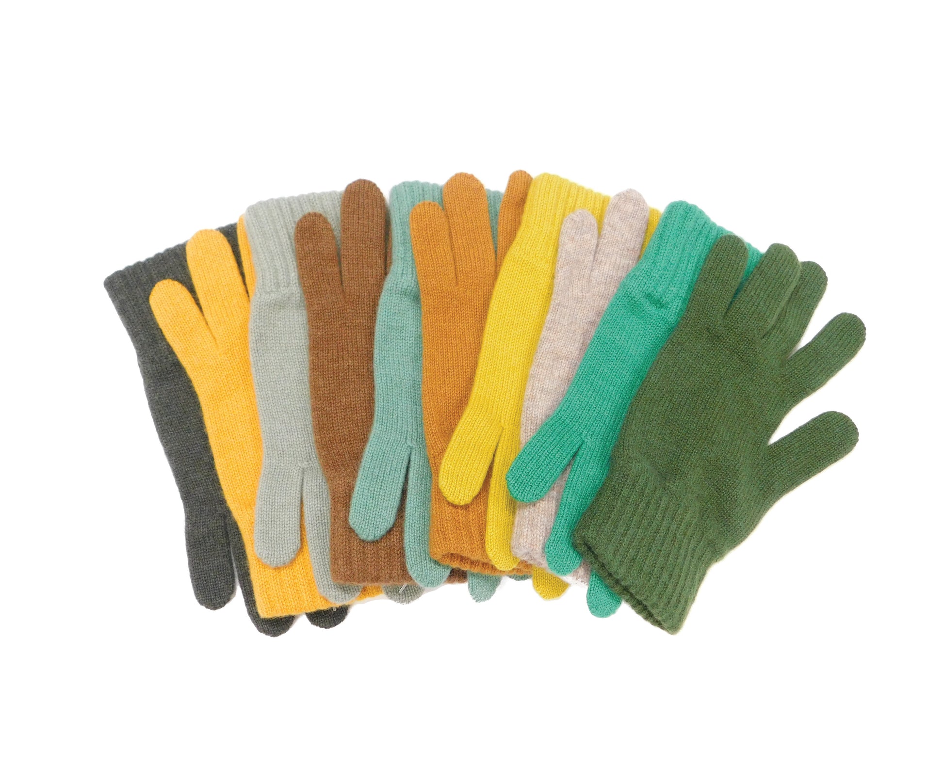 Ladies Pure Cashmere Gloves — Ribbed Cuff | Handcrafted in Hawick | Greens, Browns, Yellows and Neutrals