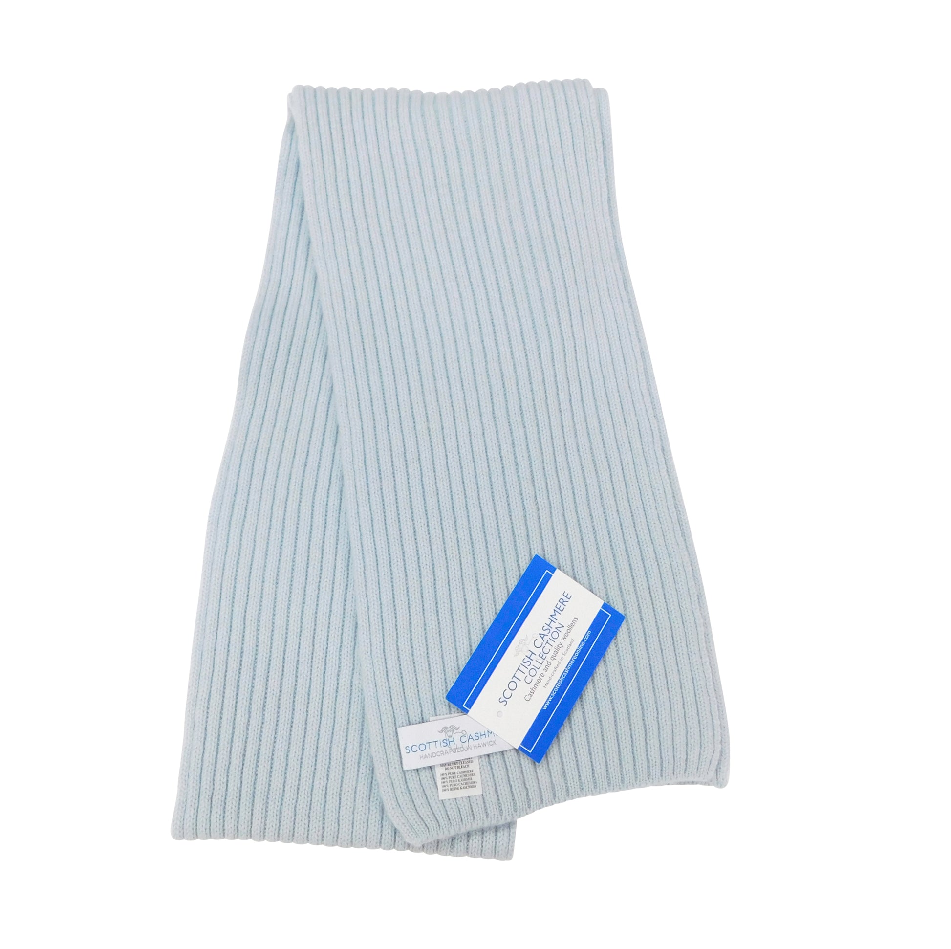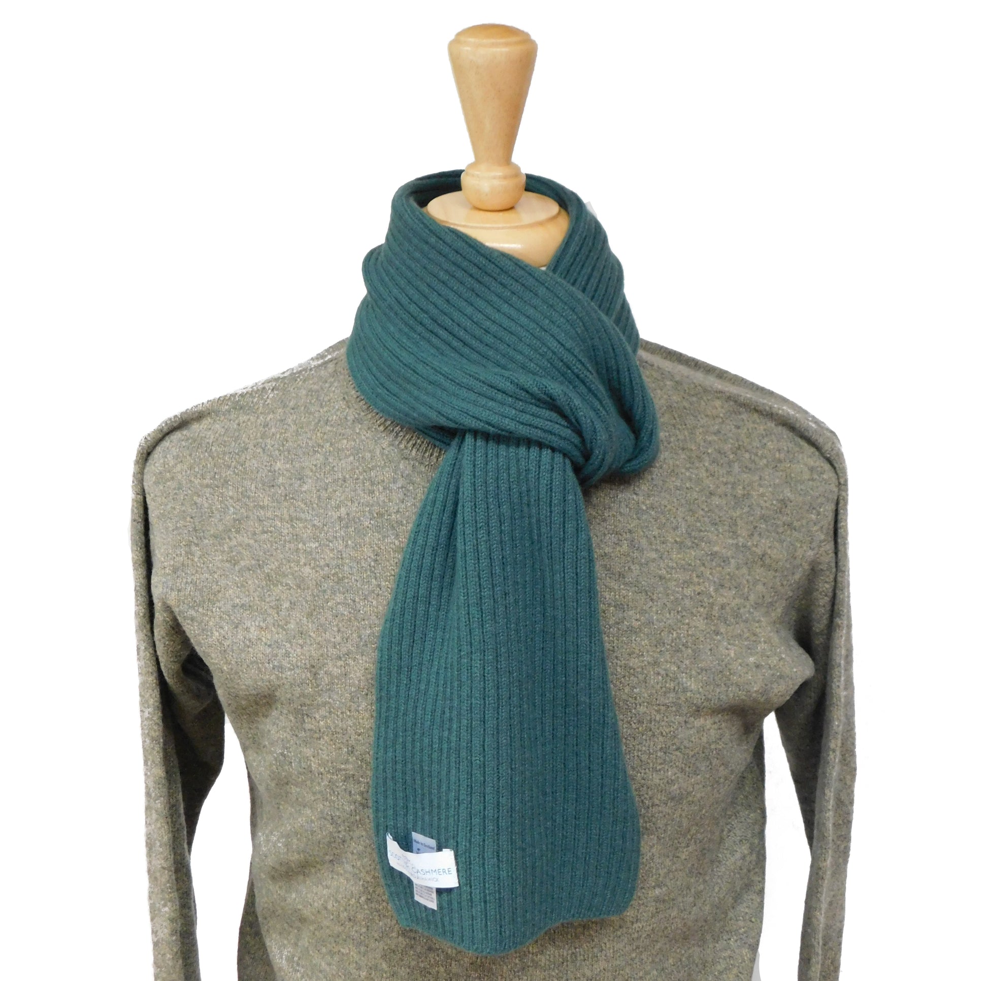 Pure Cashmere Ribbed Knit Scarf — Unisex | Handcrafted in Hawick | Greys, Blues and Greens