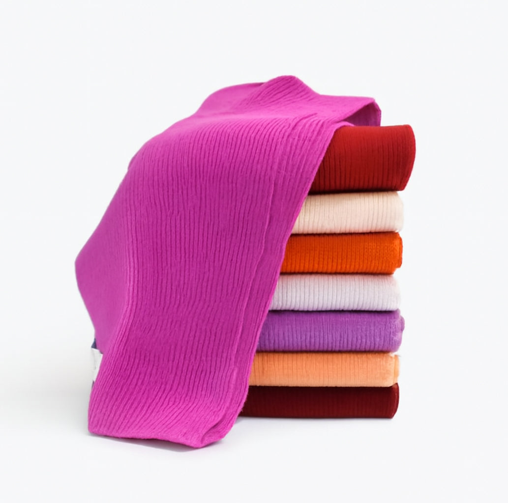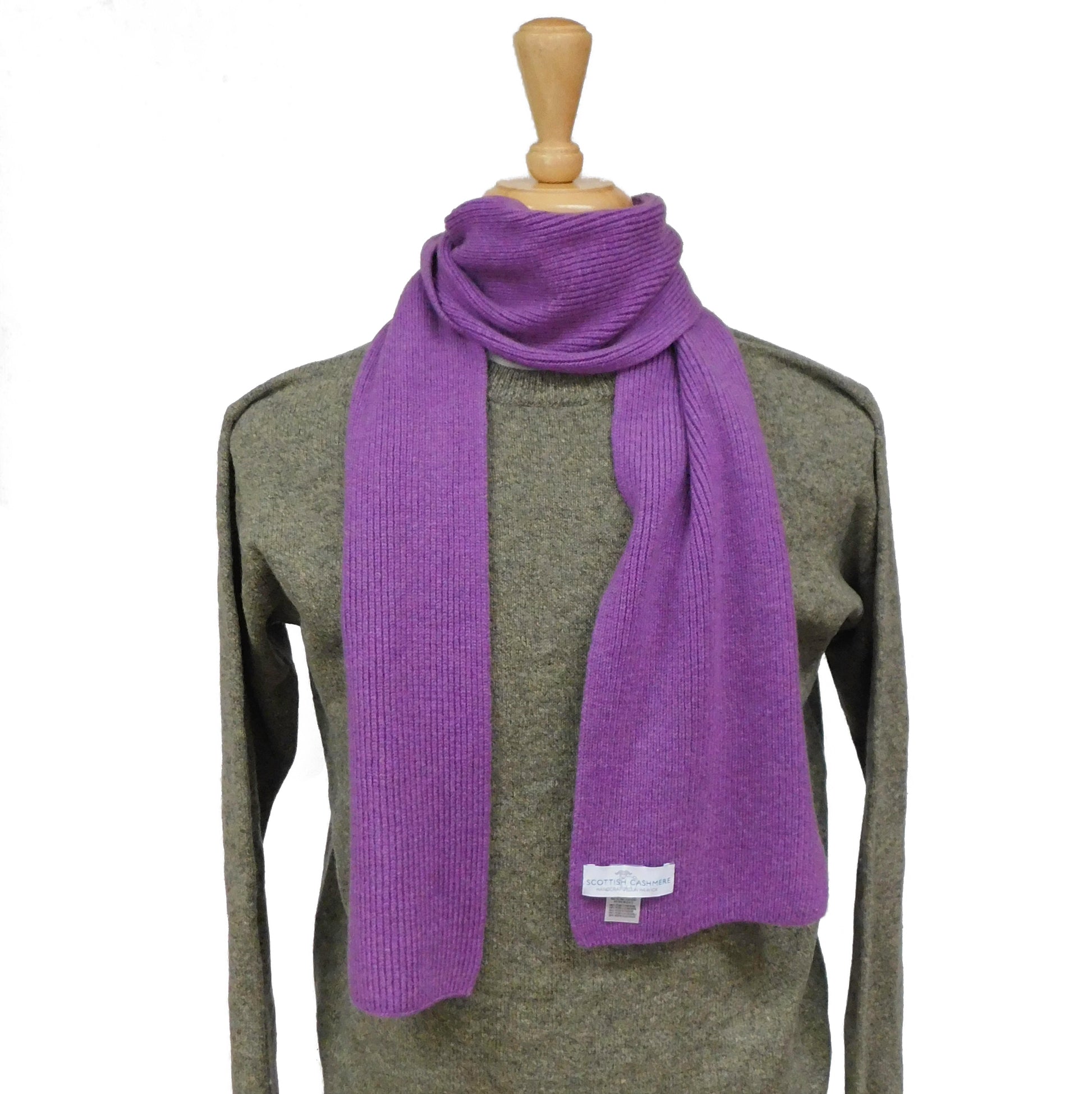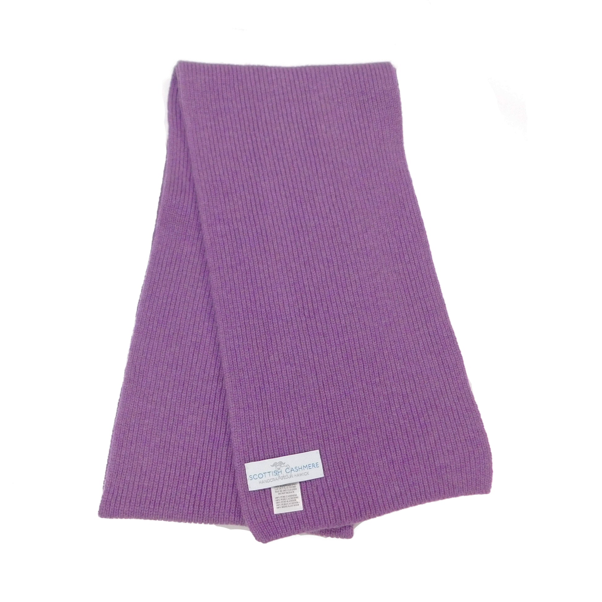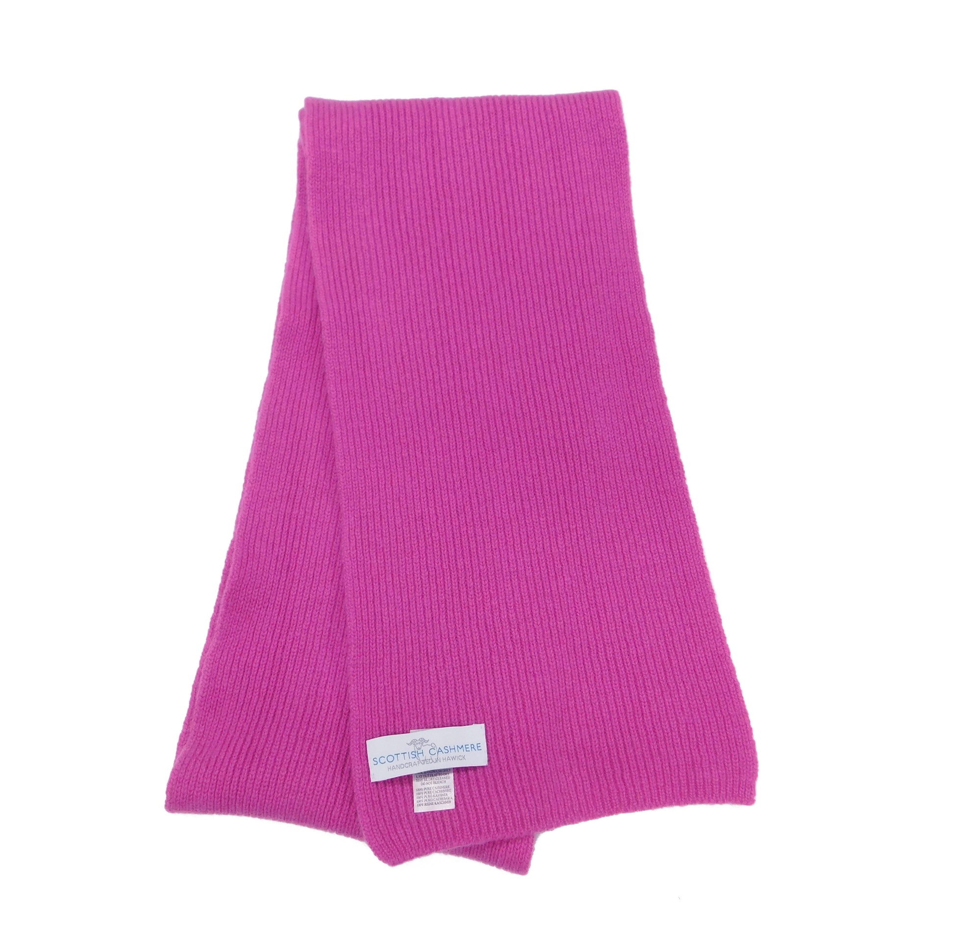 Pure Cashmere Narrow Rib Scarf — Unisex | Handcrafted in Hawick | Reds, Pinks, Lilacs and Oranges
